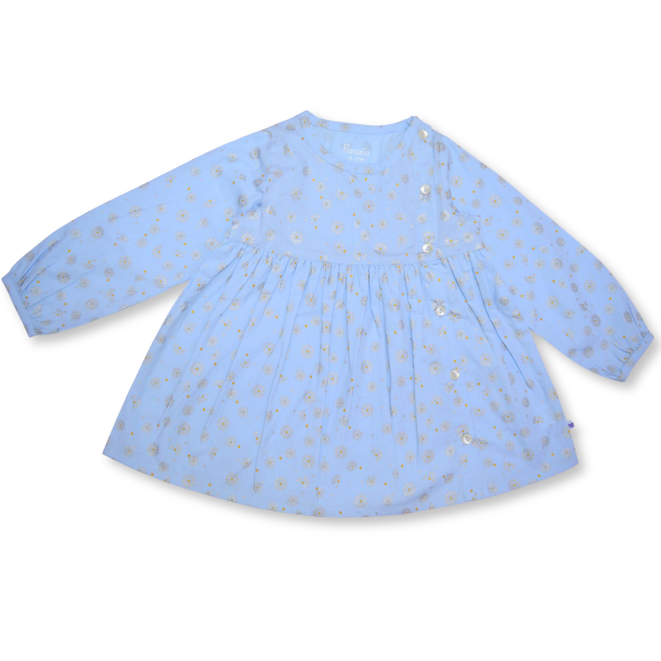 Girls Organic Cotton Gathered Shiny Printed Frock